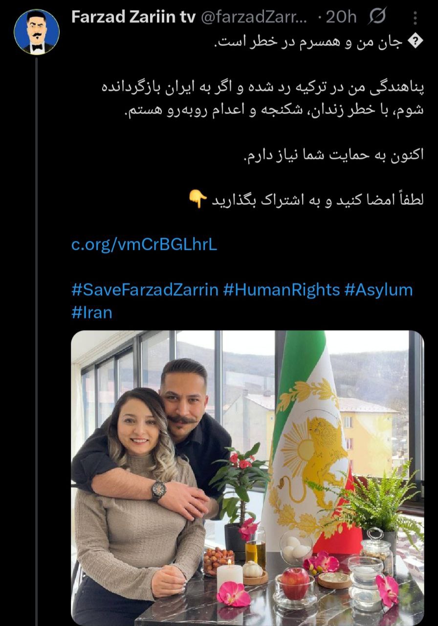 فرزاد زرین بعد از اینکه به ترکیه پناهنده شد، علیه امنیت ملی فعالیت میکرد و در اغتشاشات اخیر هم لیدری میکرد حتی آموزش ساخت سلاح و کوکتلمولوتوف نیز در پیجش گذاشته بود اما اخیرا دولت ترکیه پناهندگیاش را رد کرده است.
